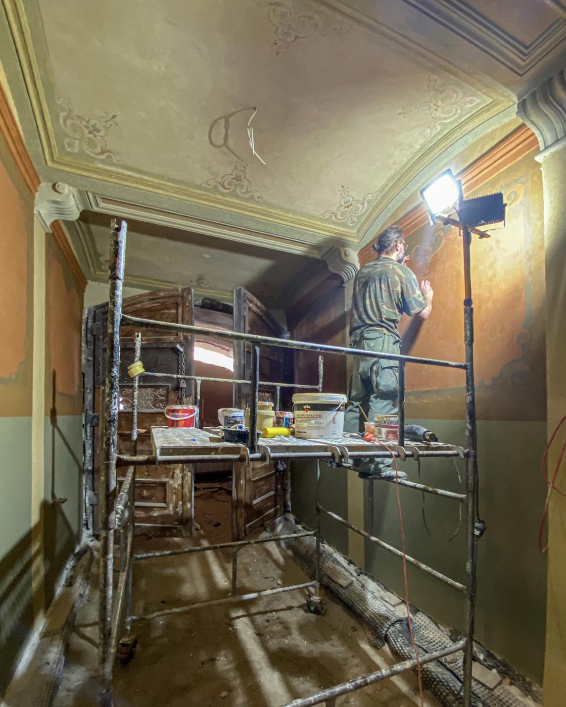 wróć do artykułu Zmieniaj zdjęcia za pomocą strzałek na klawiaturze 5 / 8 Łódź rewitalizacja. Rozpoczęło się malowanie zabytkowych sztukaterii w kamienicy na ul. Zielonej 6 Przy Zielonej 6 sukcesywnie odrestaurowywane są polichromie i trwa montaż sztukaterii